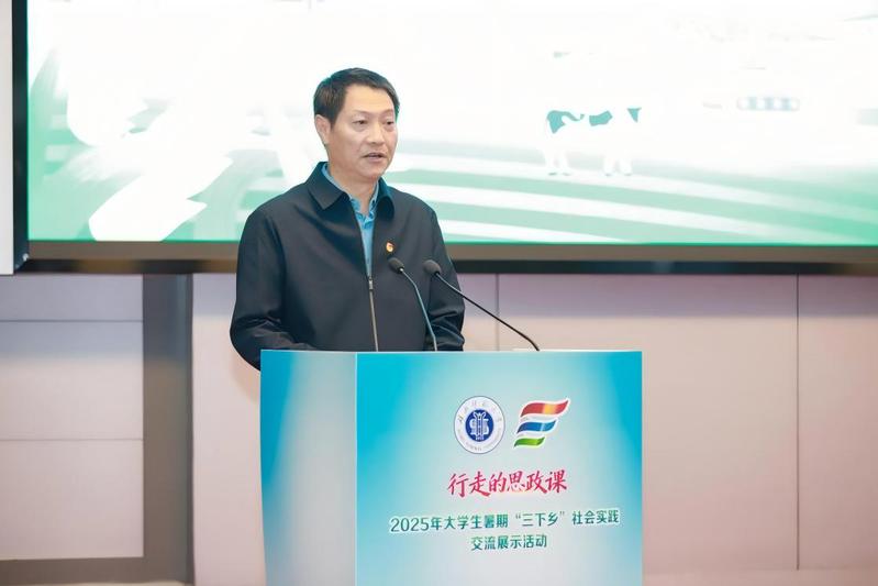 余涛在致辞中充分肯定了学校2025年大学生暑期“三下乡”社会实践工作开展情况及取得的成效。他指出,此次交流展示活动既是对2025年暑期社会实践的全面总结,更是一堂生动的“大思政课”。他强调,要深入贯彻落实习近平总书记关于青年工作的重要思想和重要回信精神,推进学校共青团“青春建功”行动深入实施,引导更多青年师生上好“行走的思政课”。为进一步深化学校实践育人工作,他向全体师生提出三点希望:一是构建实践育人新格局,推动社会实践与理想信念教育、社会发展需求、专业教学体系深度融合;二是健全全过程管理机制,强化校地共建实践平台建设,为实践育人工作提供坚实保障;三是推动实践成果多维转化,打造可持续实践服务品牌,促进实践成果向育人成效转化。