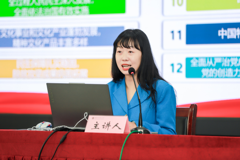 宣讲活动中,四位来自不同领域的宣讲团成员结合自身工作实践与成长经历,从多元视角展开分享,共同奏响“青春为中国式现代化挺膺担当”的主旋律,为现场学子带来了一场深刻的思想洗礼与精神感召。武汉工程大学马克思主义学院教师董慧茜系统阐释了“十五五”时期的战略定位与发展路径,深刻剖析其作为中国式现代化关键阶段的承上启下作用,帮助青年学子明晰时代发展脉络与历史使命;碳排放权登记结算公司主管刘昕罗以“碳小二”的生动实践案例,直观展现全国碳市场在推动绿色转型、落实“双碳”目标中的桥梁纽带作用,让学子们真切感受国家推进美丽中国建设的坚定决心与实际成效;武汉工商学院学生曹雨深情讲述自身援藏支教的经历,通过长江经济带到雅江峡谷的实践对照,生动诠释了青年在“铸牢中华民族共同体意识”、助力乡村振兴与教育振兴中的责任担当,展现了中国式现代化建设的鲜活实践;黄石市消防救援支队幸福消防站政治指导员陈新锐分享了十三载逆火而行的坚守历程,以“人民至上、生命至上”的消防精神,传递了扎根岗位、无私奉献的职业信念,引发学子强烈共鸣。