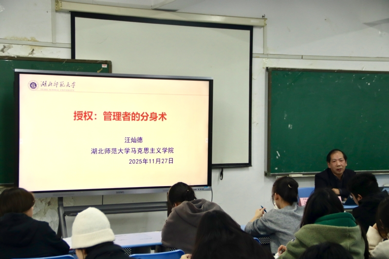 11月27日下午,第十期“青马工程”培训班第四次理论授课在大学生青年活动中心315顺利开展。本次授课特邀马克思主义学院副院长汪灿德主讲,以“授权:管理者的分身术”为核心主题,旨在帮助学员构建系统权力观、培养科学管理思维,第十期青马班全体学员参与学习。
