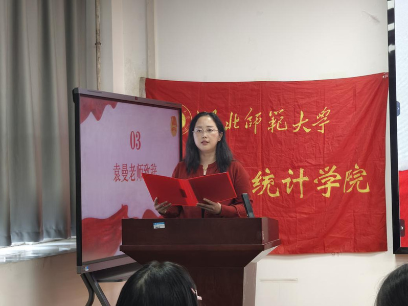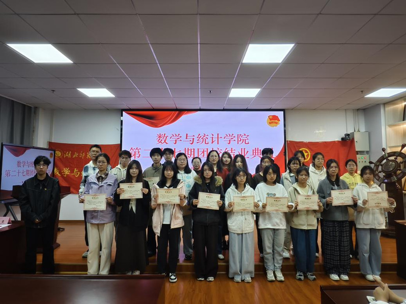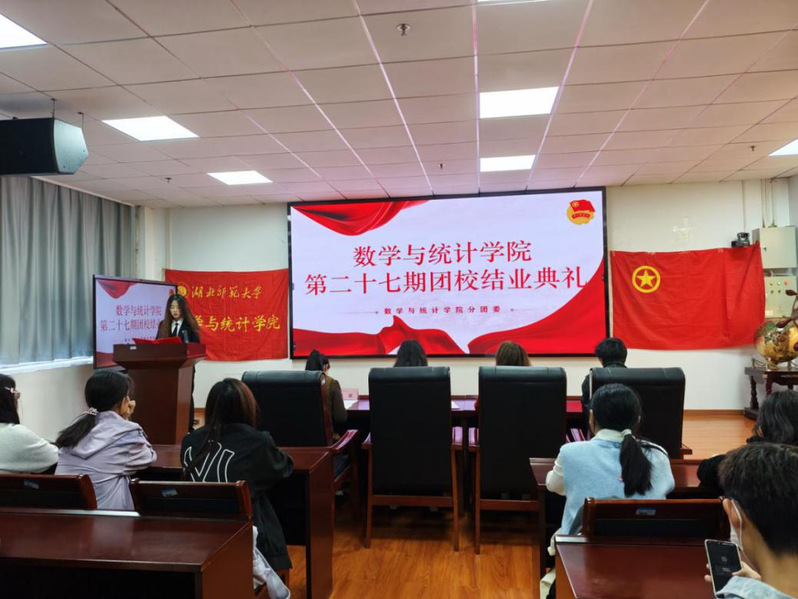 为全面总结团校培训成果,表彰先进榜样,11月14日,数学与统计学院在信息大楼举行了第二十七期团校结业典礼。学院党委副书记袁曼,团委书记朱丽,学工办主任屈媛媛,团委学生副书记贾英宝出席典礼。典礼由徐鑫淼主持。