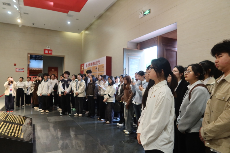 进入陵园后,全体学员在湘鄂赣边区鄂东南革命烈士纪念碑前整齐列队,面向纪念碑肃立默哀,表达深切哀思。学员代表杨之才、田沛然上前敬献花圈并整理挽联,表达对英烈的崇高敬意。在重温入团誓词环节,领誓人陈语馨带领全体学员高举右拳庄严宣誓。随后,学员代表谭佳在纪念碑前讲述烈士事迹,带领大家回顾革命历史,体悟英烈忠诚担当、舍生取义的精神品格。学员们走近瞻仰纪念碑,观看碑体南面“阳新九烈士”、西面“拥护红军”浮雕,深入了解革命先辈的奋斗历程。在讲解员的带领下,全体学员参观鄂东南革命烈士纪念馆,通过历史文物与图文资料,全面了解鄂东南人民艰苦卓绝的革命斗争历程。