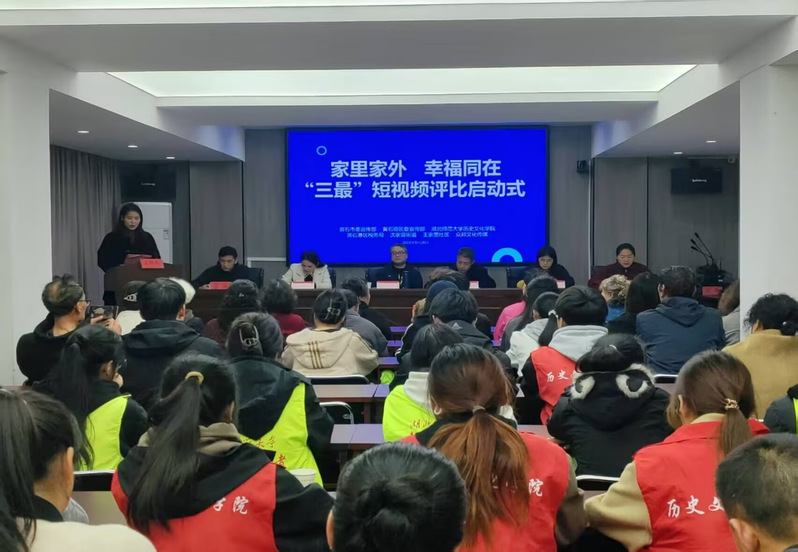 3月26日下午,“三最”短视频评比启动仪式在王家里社区举行。历史文化学院辅导员郑甜甜、青年志愿者代表与社区居民齐聚一堂参加活动启动仪式。
