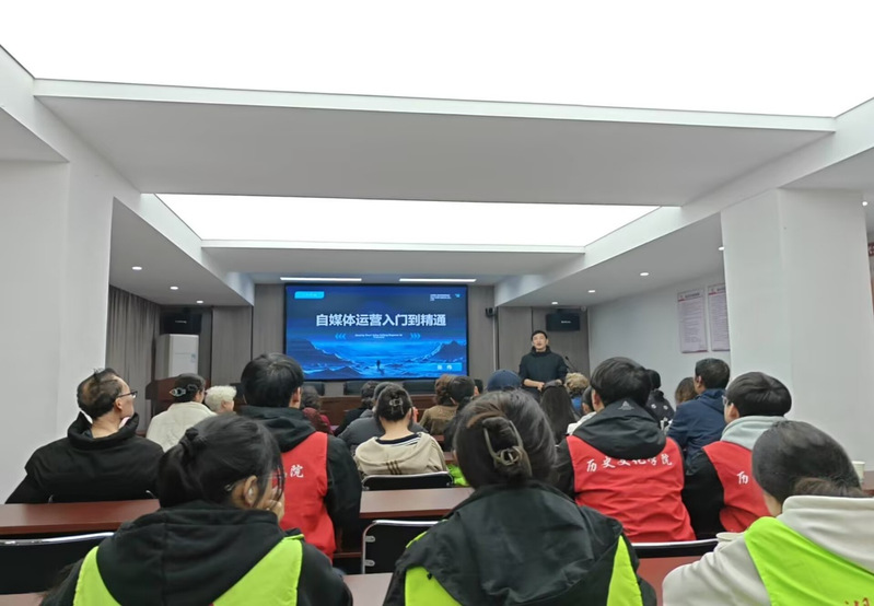 启动式上,社区书记余立青发表讲话。她感谢了湖北师范大学历史文化学院对社区本次活动的支持,并赞赏了青年志愿者们的积极参与,称大家用青春的热情为社区增添了温暖与活力。在主持人的引导下,“家里家外 幸福同在——‘三最’短视频评比”活动在居民和志愿者们的共同见证下正式召开。社区工作人员特别邀请辖区企业的资深媒体人张伟,为居民与志愿者们带来有关自媒体运营的实用课程。现场居民与志愿者们认真聆听、积极互动,在轻松愉快的氛围中学会了有关摄影、剪辑等新技能。