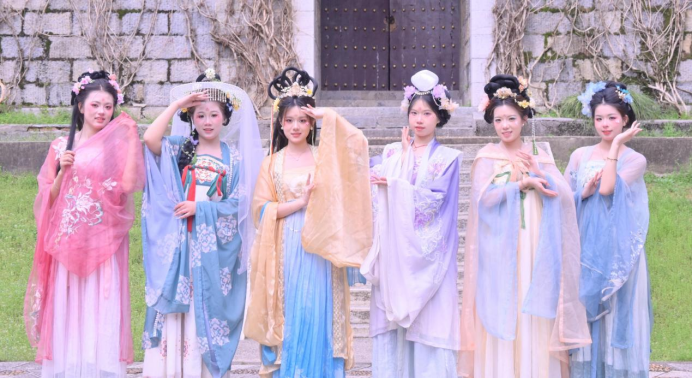 为保障活动高质量落地,美术学院根据学生专业背景,组建了“表演创作—宣传推广—志愿服务”三位一体的工作体系。表演组身着传统汉服,在樱林步道开展行进式演绎,融合花朝文化与春日意象。摄制组全程参与宣传片及游客vlog拍摄,累计产出素材超1000分钟。志愿者团队承担现场引导、游客咨询、秩序维护等全链条服务,累计服务游客超万人次,日均服务时长达10小时。